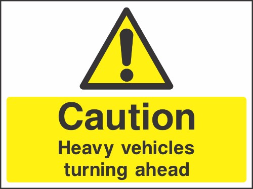 Caution Heavy vehicles turning ahead sign