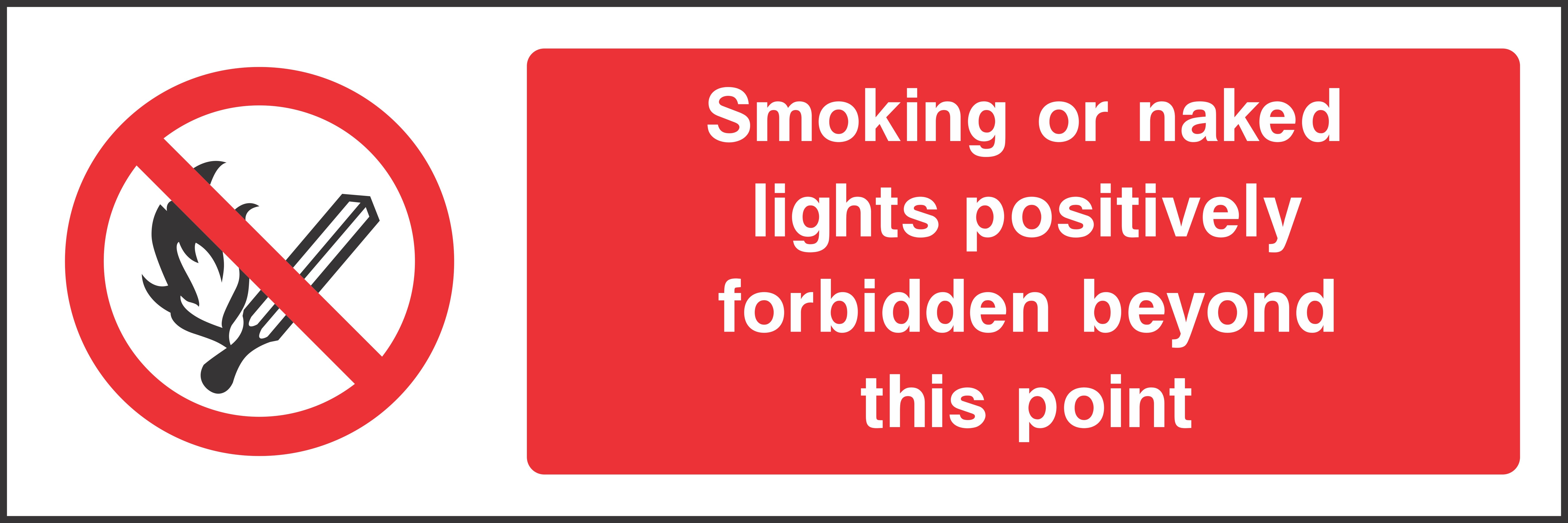 Smoking or naked lights positively forbidden beyond this point Sign