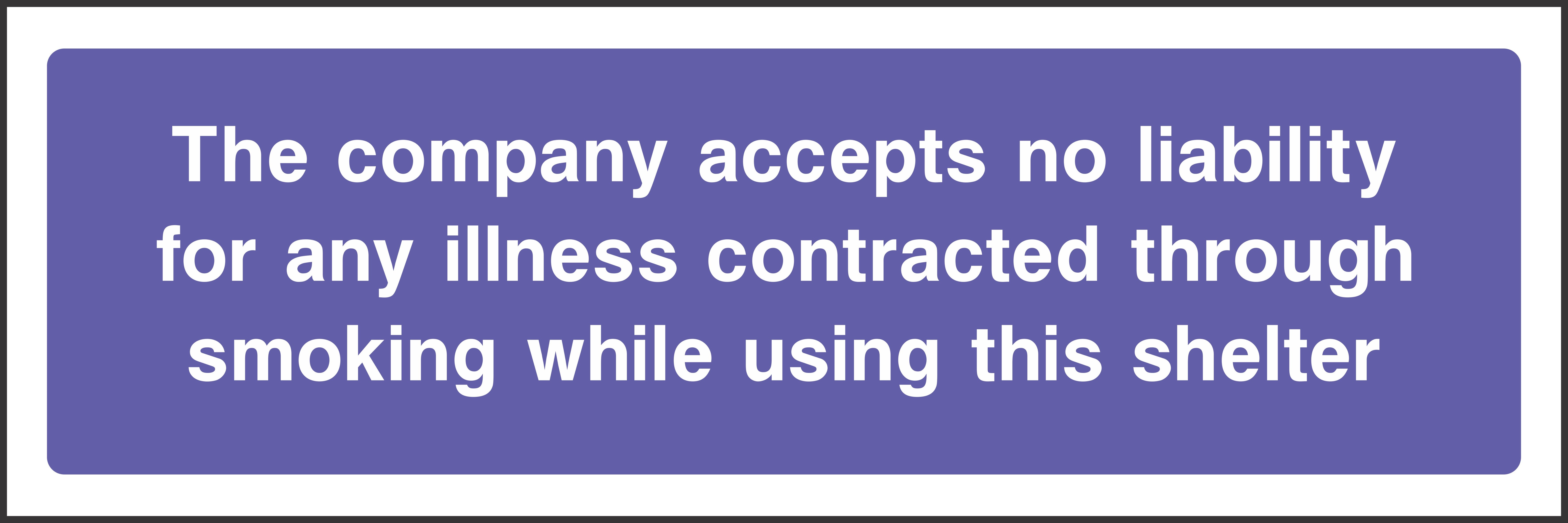 xThe company accepts no liability for any illness contracted through smoking while using this shelter Sign