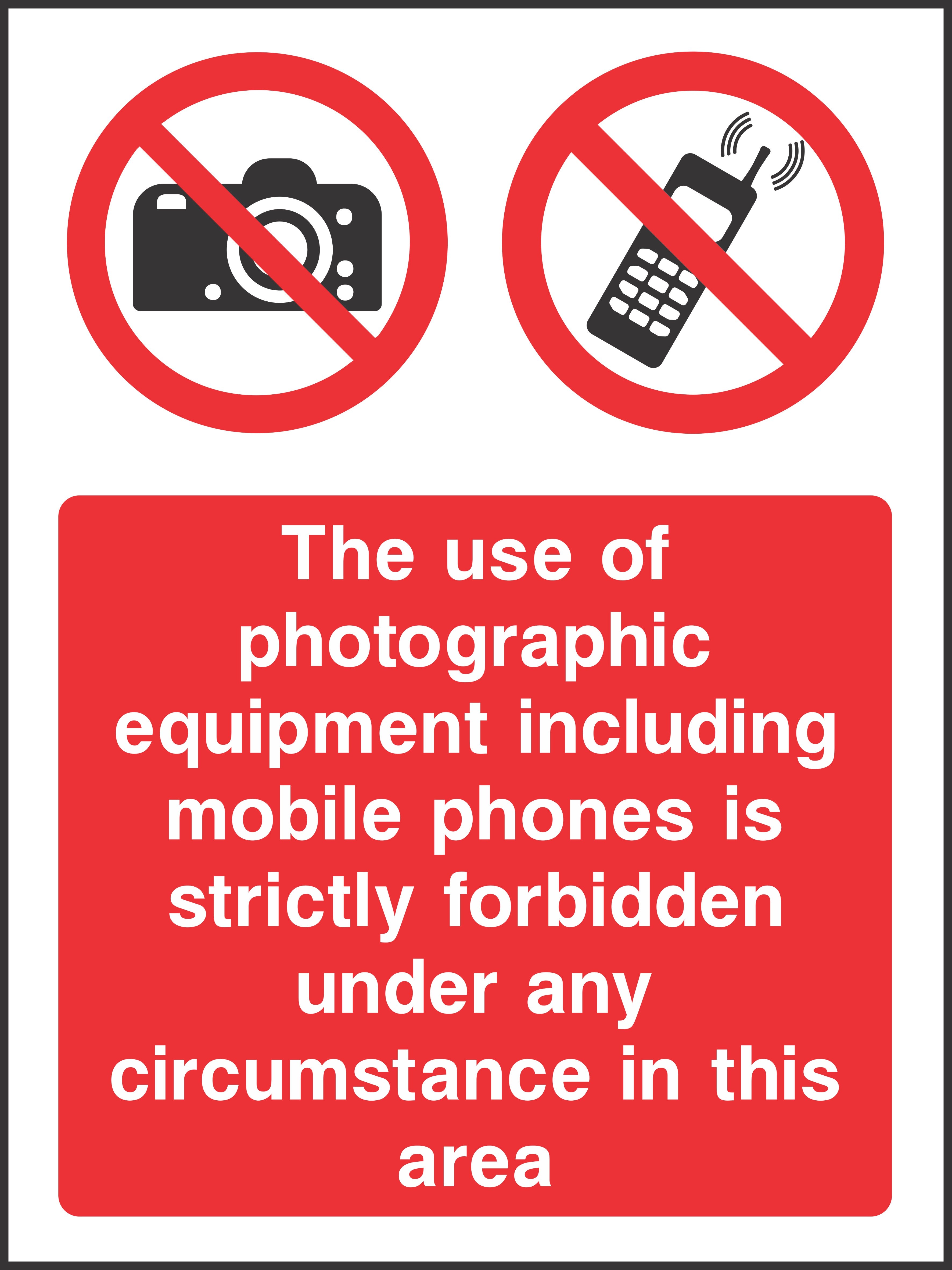 The use of photographic equipment is strictly forbidden Sign